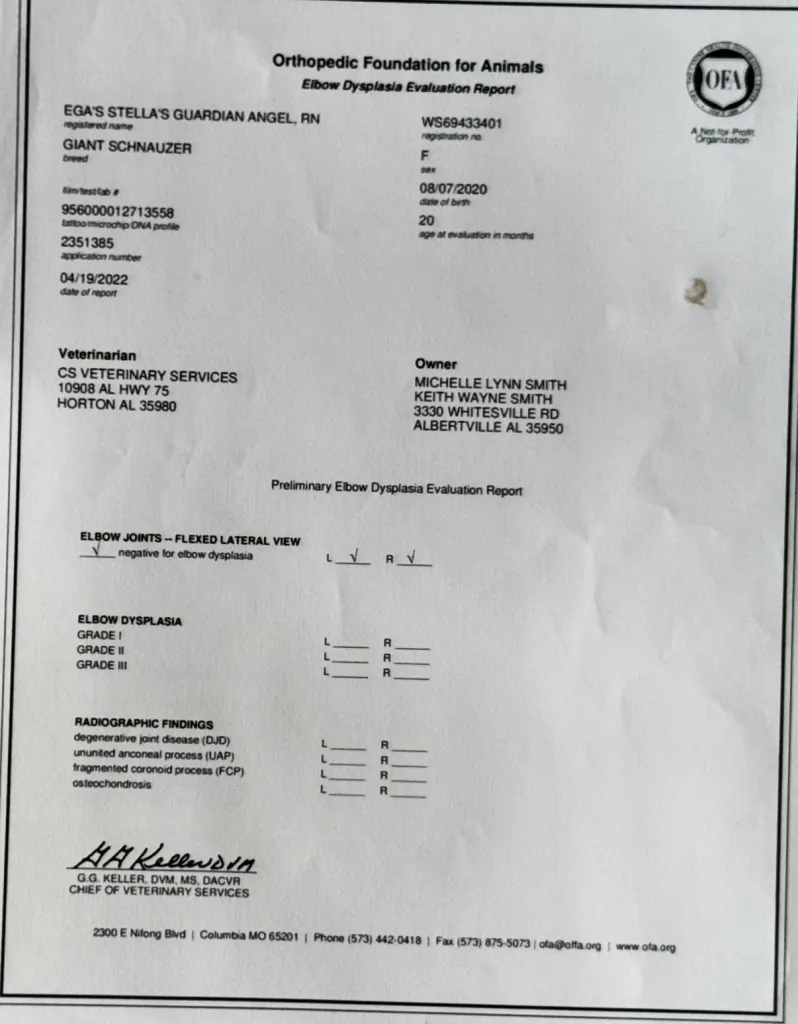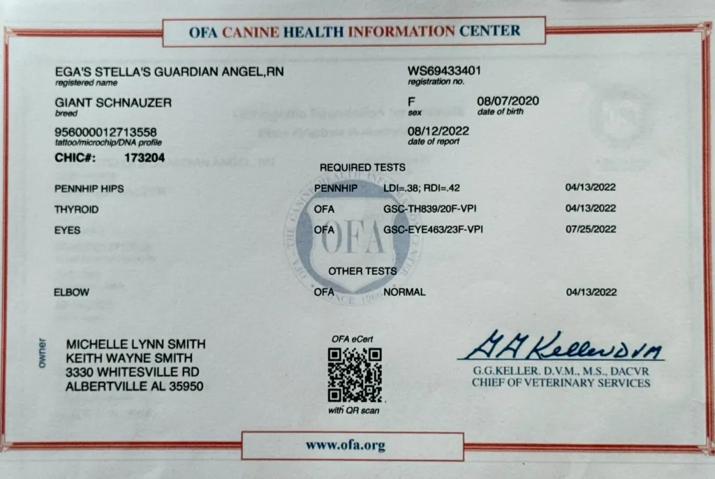 To be part of our breeding program, sires and dams must meet strict standards and be clear for the following breed-specific health testing:
